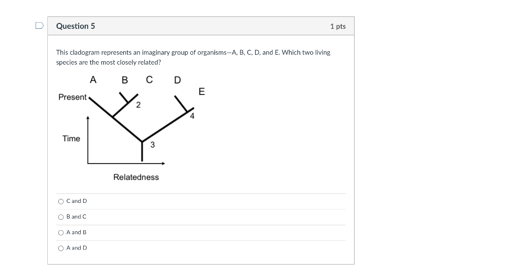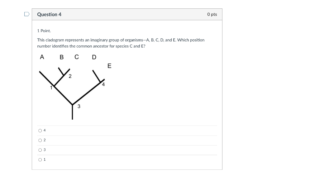 Solved D Question 4 O Pts 1 Point This Cladogram Represents Chegg Com